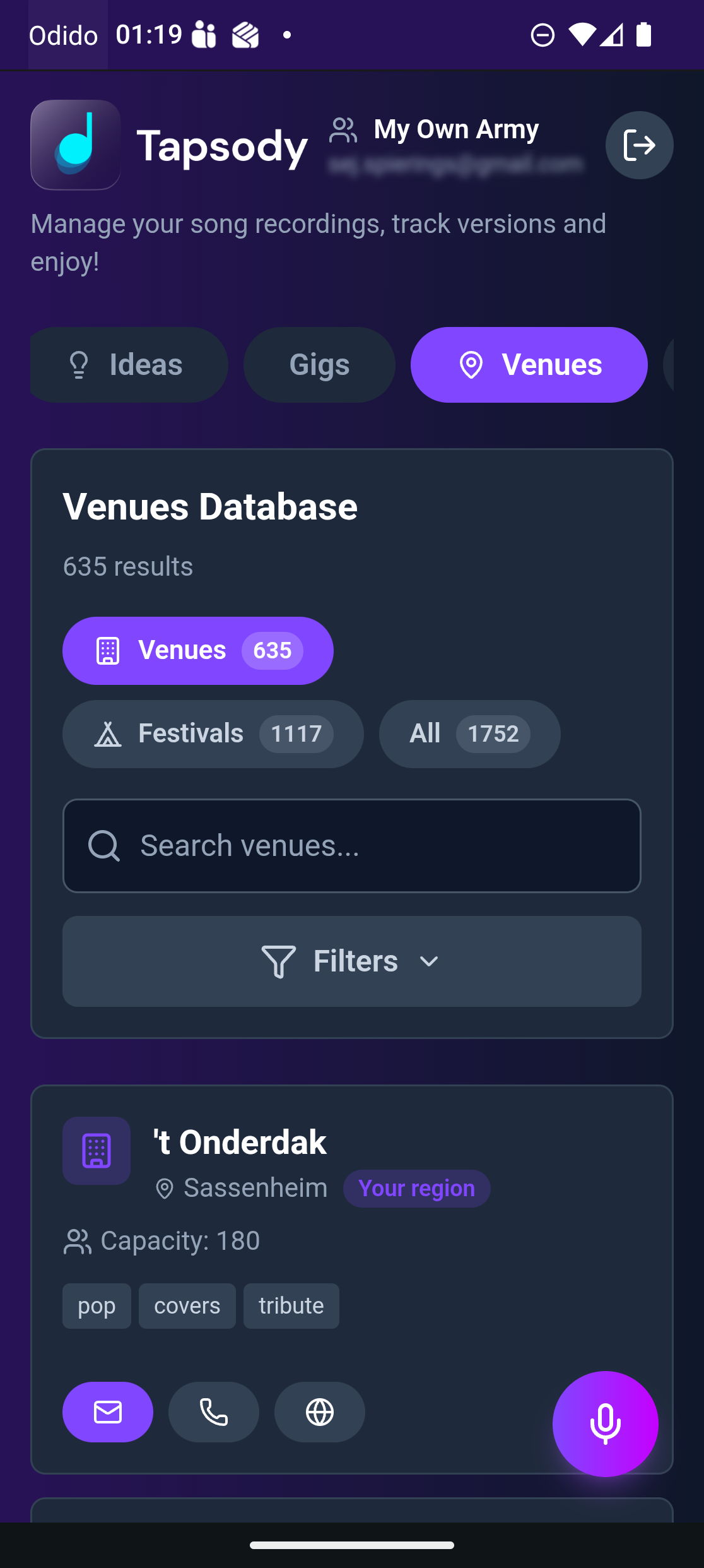 We've compiled a database of 1,750+ Dutch venues and festivals. Filter by genre, capacity, location, and more. Contact info included so you can reach out directly.